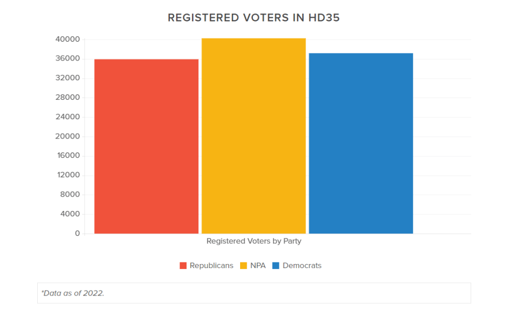 Democrats in have a 1,244 advantage over Republicans, but majority of voters are registered as Independent or No Party Affiliation (NPA), making them the deciding factor in this race.