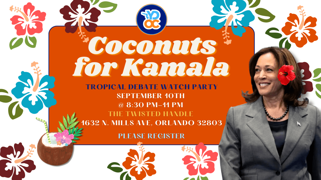 Are you coconuts for Kamala? π΄π Well, we are falling out of a tree for her! Join the Young Democrats of Orange County for a lively Presidential Debate Watch Party on September 10th from 8:30 PM to 11:00 PM at The Twisted Handle: 1632 N Mills Ave, Orlando, FL 32803.