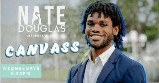 Join Team Nate as we knock doors together in Orlando and let the community know about Nate Douglas and renewing your vote-by-mail ballot. Location and Address will be provided after RSVP and once we are closer to the event.