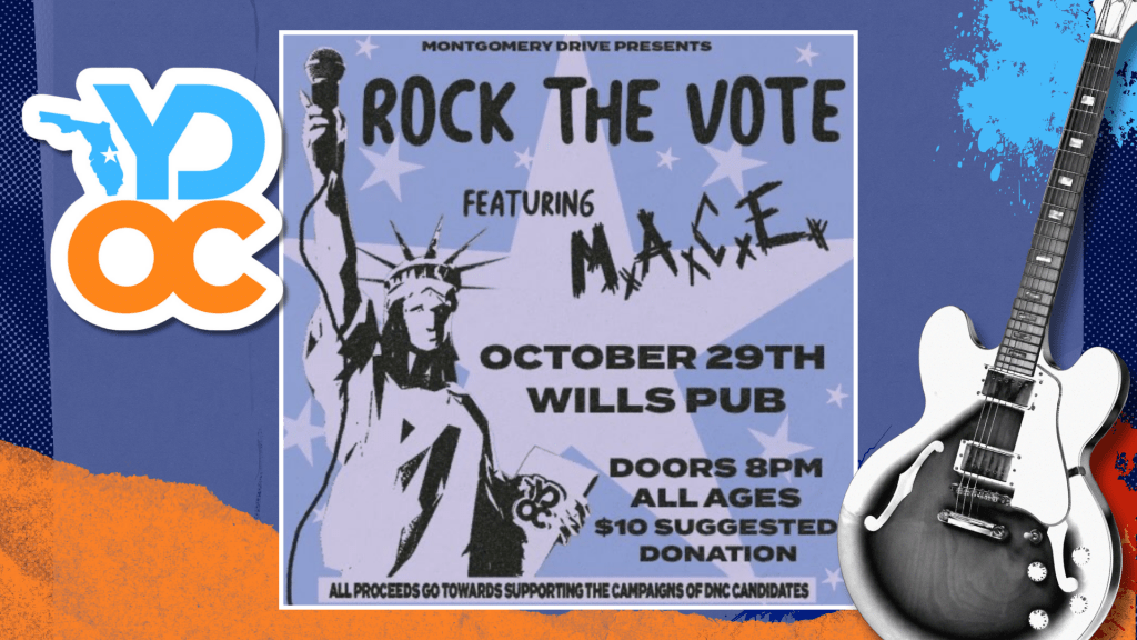 Montgomery Drive Presents: Rock The Vote- A Concert at local venue Will’s Pub featuring local artis M.A.C.E to get out the vote and energize the youth to show up at the polls this election!